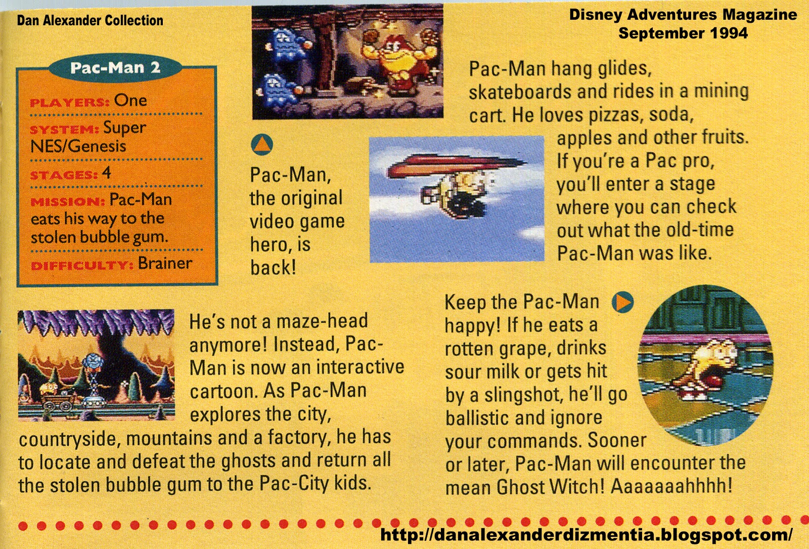Pac-Man game ads were frequently featured in Disney Adventures Magazine during the 1990s.